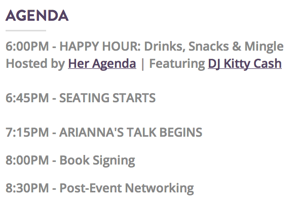 Of all the speakers and event headliners we've had, Arianna may require the least introduction. We're lucky to have her at AlleyNYC this Wednesday for #ThriveAtAlley. Her 14th book, Thrive: The Third Metric to Redefining Success and Creating a Life of Well-Being, Wisdom, and Wonder was published by Crown in March 2014 and debuted at #1 on the New York Times bestseller list.