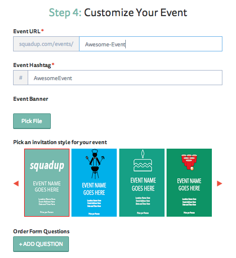 The design of the event page is the first thing people will notice. While we love our SquadUP color scheme and overall design, your event page should reflect your event. Start by choosing an event flyer. This will serve as the main image for your event and come up as the thumbnail for others visiting the SquadUP events tab and when you post the event to Facebook, Google+, or anywhere else.