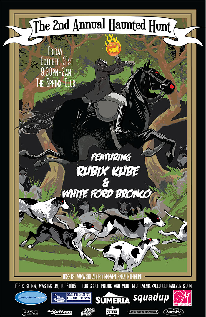 The Hunt, not to be confused with the Far Hills Horse Race called "The Hunt" in New Jersey, will feature two of the best cover bands that will be sure to provide some amazing jams that you all know and love. DC legend White Ford Bronco will kick the night off with a set of the best songs from the 90's followed by Rubix Cube of NYC laying down some of the sickest tracks from the 80's. And they recently locked up Dale and the Z Dubs to open up the night -- a killer DC band that will get things started right.