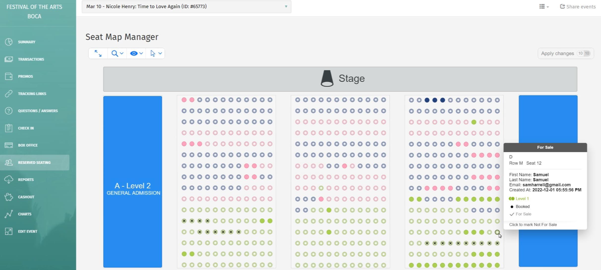 With our new Seat Map Manager, you can view the name, email, and transaction time associated with each reserved seat. This update makes it easier than ever to view details about your reserved seating attendees. Additionally, event hosts can select seats (or sections) to hold (or release). This functionality works on desktop and mobile web, and updates in real-time.