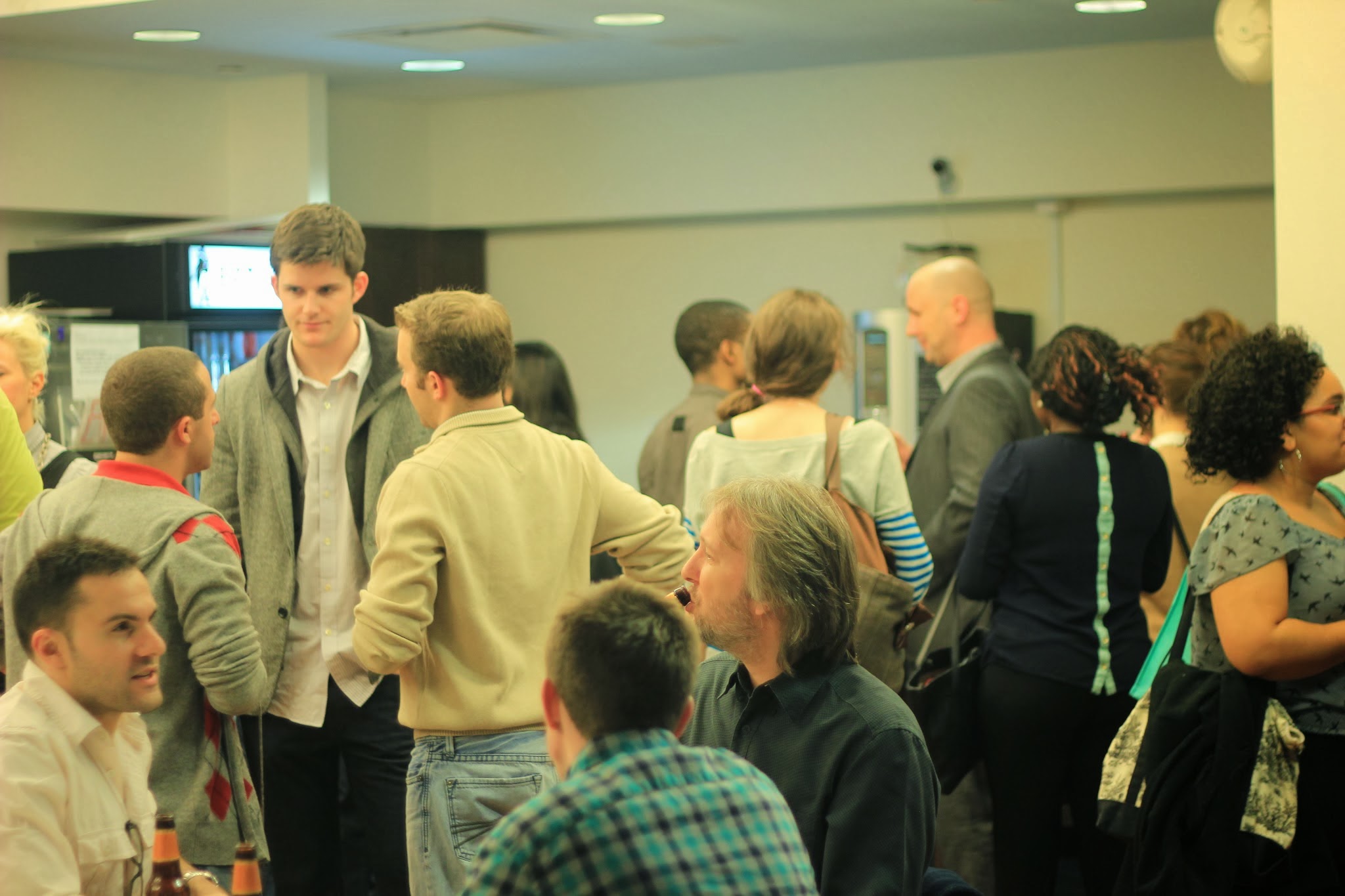 If you're open minded and looking to move away from the standard happy hour experience, we have some inspiration for you. We host a Happy Hour Showcase every Wednesday at our co-working space, AlleyNYC. The event is mostly networking and drinking, but we also give 2 emerging startups the chance to informally present their idea to the crowd, get some feedback, and answer some questions. We decided to host the event in the cafe lounge area of AlleyNYC because we wanted a screen to for quick presentations, the ability to adjust the music and generally have more control over the space.