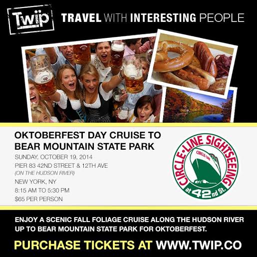 On the 19th of October, TWIP is hosting an Oktoberfest Day Cruise to Bear Mountain State Park. Twippers will enjoy a scenic Fall foliage cruise along the Hudson River up to Bear Mountain State Park. You will have the opportunity to indulge in German food, beer, live entertainment and craft vendors while taking in the gorgeous scenery of upstate New York. There are also 50 trails for hiking once we reach our destination at Bear Mountain. BUY TICKETS HERE